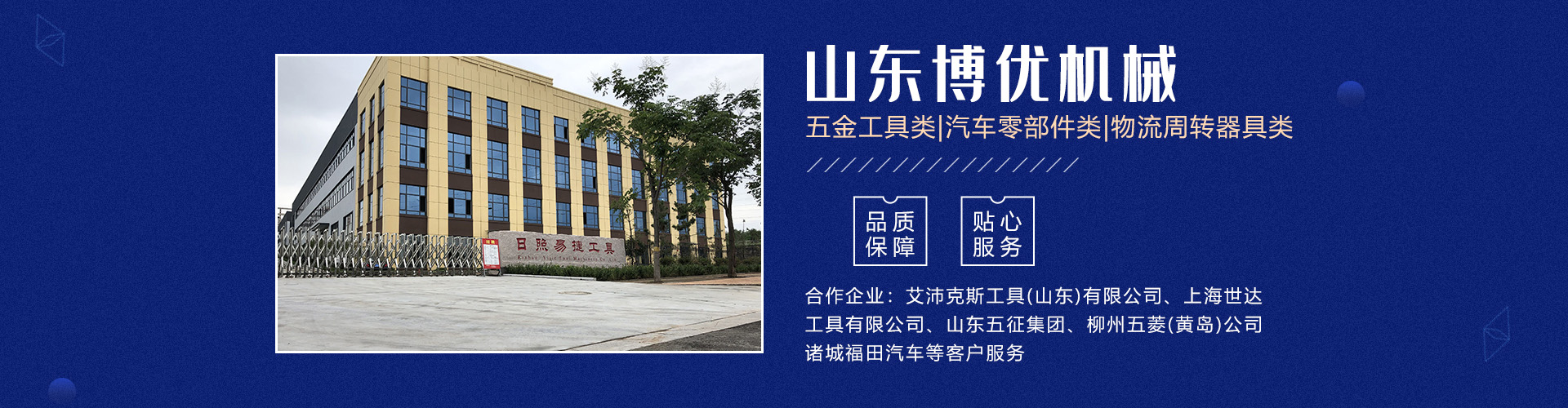 分公司日照易捷工具制造有限公司坐落在山東省日照市五蓮縣工業(yè)園,占地65畝(五蓮縣日照路與人民路交匯處),現(xiàn)有員工60名。公司主要產(chǎn)品有五金工具類及汽車零部件類、模具制作等三大系列。 主要設(shè)備有加工中心、數(shù)控車床生產(chǎn)線、磨床、研磨機(jī)、拋光機(jī)、冷鐓擠壓成型機(jī)、數(shù)控液壓模鍛錘等機(jī)械加工設(shè)備140余臺(tái)套。公司主要為艾沛克斯工具(山東)有限公司、上海世達(dá)工具有限公司、山東五征集團(tuán)、柳州五菱(黃島)公司、諸城福田汽車等客戶服務(wù)。公司多年被評為優(yōu)秀供應(yīng)商。